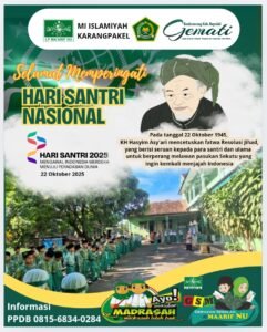 Hari Santri Nasional 2025 MI Islamiyah Karangpakel melanjutkan perjuangan KH. Hasyim Asy’ari lewat pendidikan Formal ,Maka Berbanggalah Menjadi bagian dari NU .